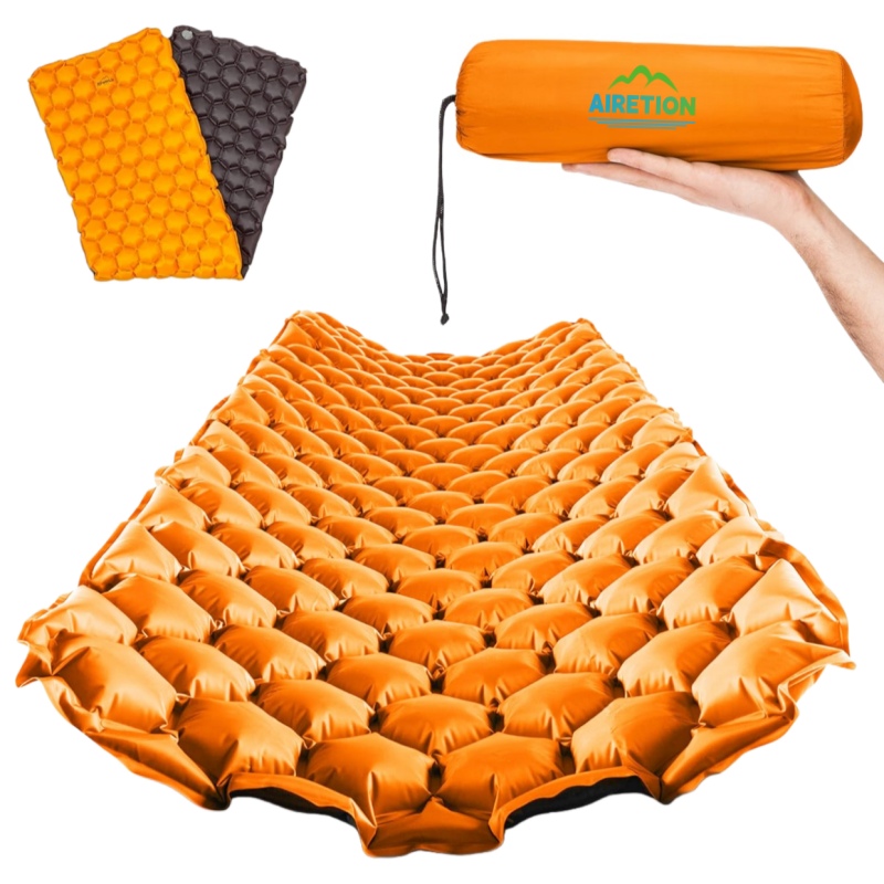 Are you exhausted from lugging around a heavy sleeping mat every time you go camping? With the Airetion Sleeping Pad, you don't need to worry about room in your backpack, and best of all, you won't have any backaches due to heavy weight! It's super compact, light and conveniently portable!