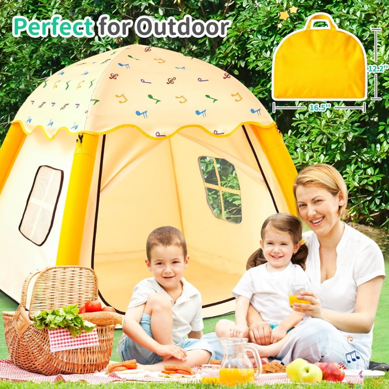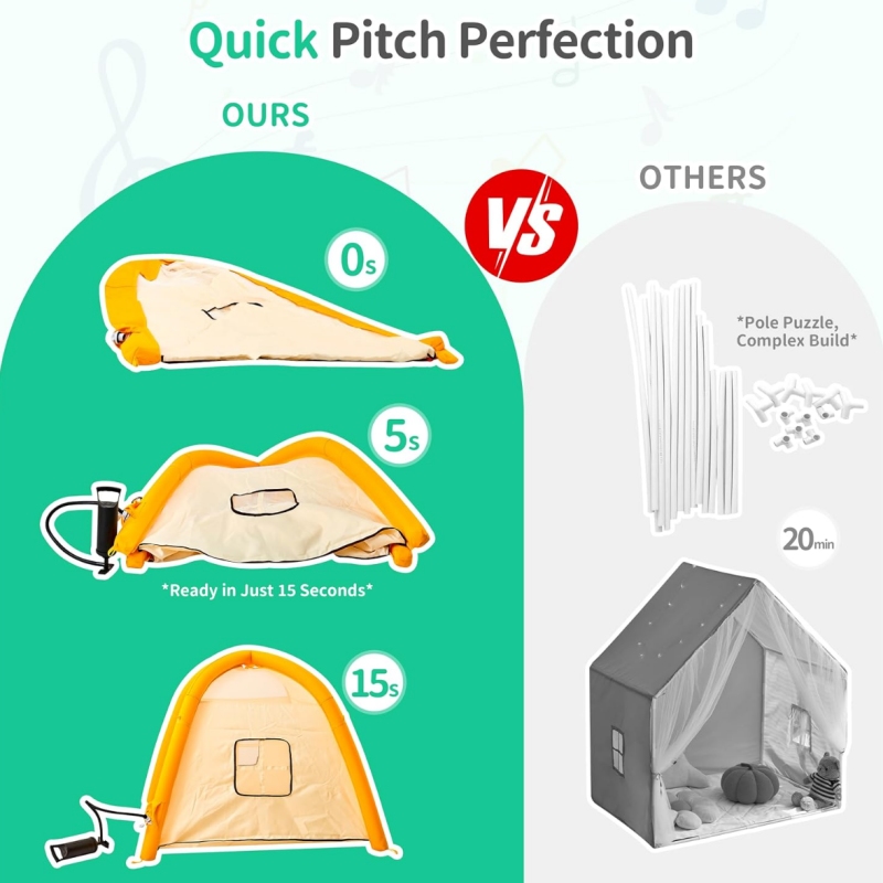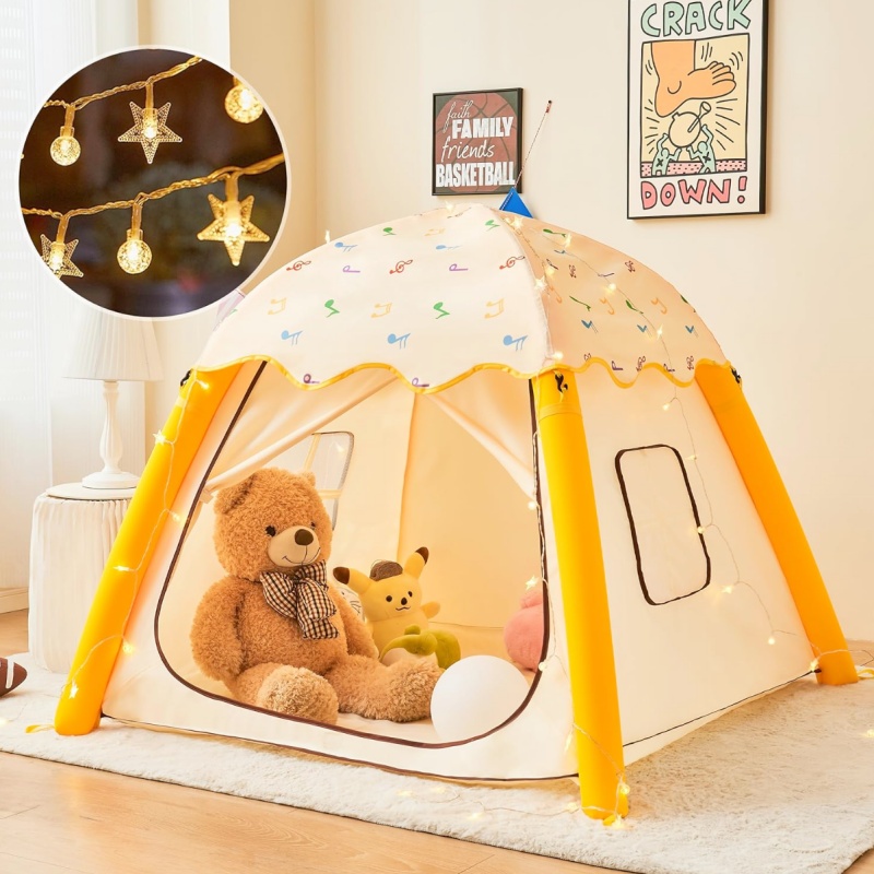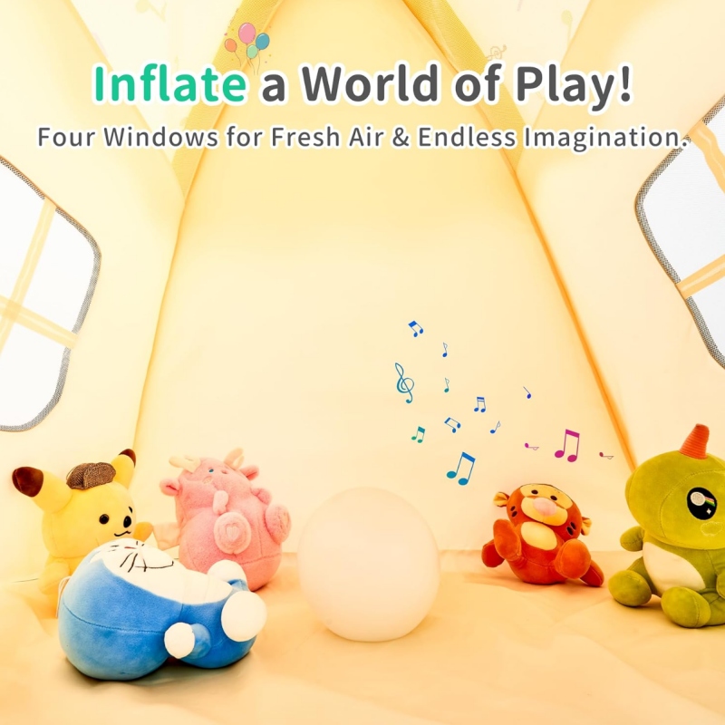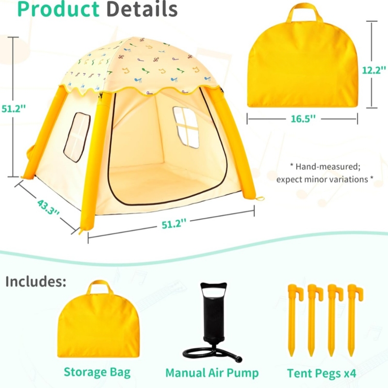 【Charming Play Haven & Dreamy Gift】: Featuring musical notes, this vibrant kids play tent creates a cozy indoor kids tent for reading, sleeping, or hideouts. Perfect for role-play, this toddler tent is an ideal gift for Birthdays, Children’s Day, Thanksgiving, or Christmas, delighting boys and girls with a magical inflatable tent for kids.